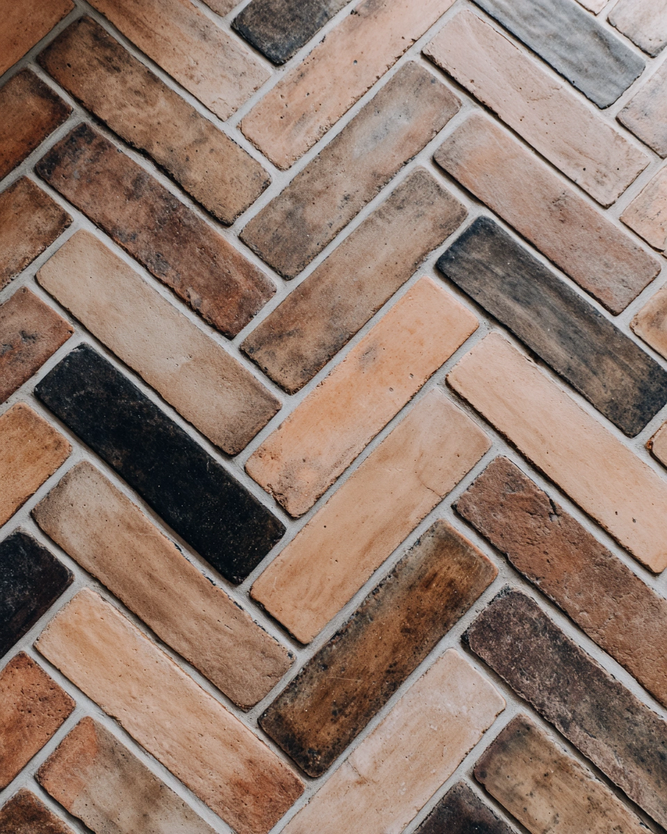 I love how the warm tones of this rustic tile create a cozy vibe, while the classic herringbone pattern adds a timeless touch of elegance. Enhance the inviting atmosphere by pairing this flooring with wooden accents and soft textiles.