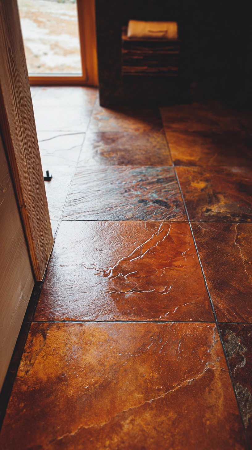 Dark slate flooring adds an elegant touch with its rich texture and deep color, creating a vibe that’s both warm and sophisticated. To balance the intensity of the dark color, pair it with light-colored walls and natural wood accents to make the space feel bright and inviting.