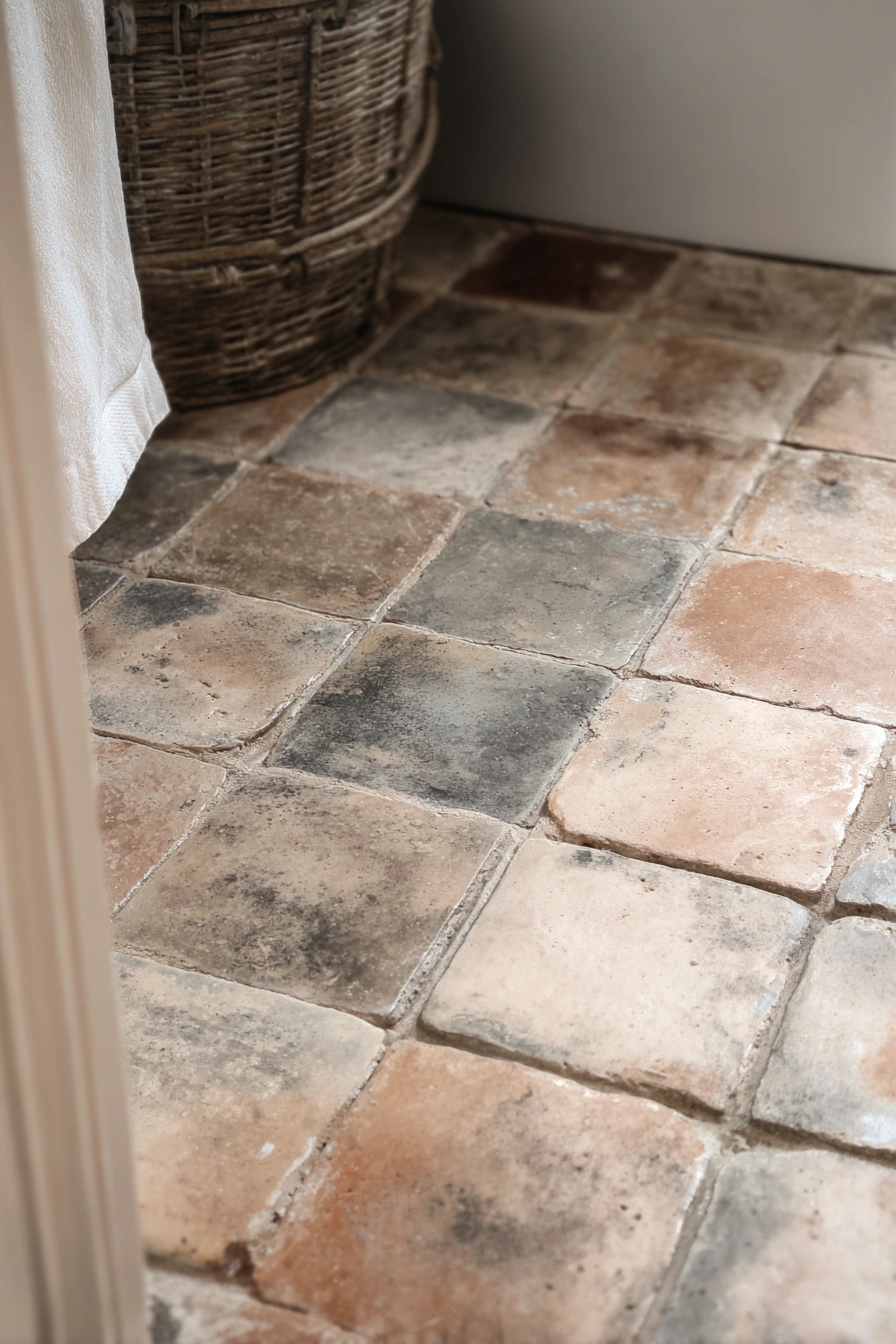 15) Earthy Antique Terracotta Bathroom Tiles