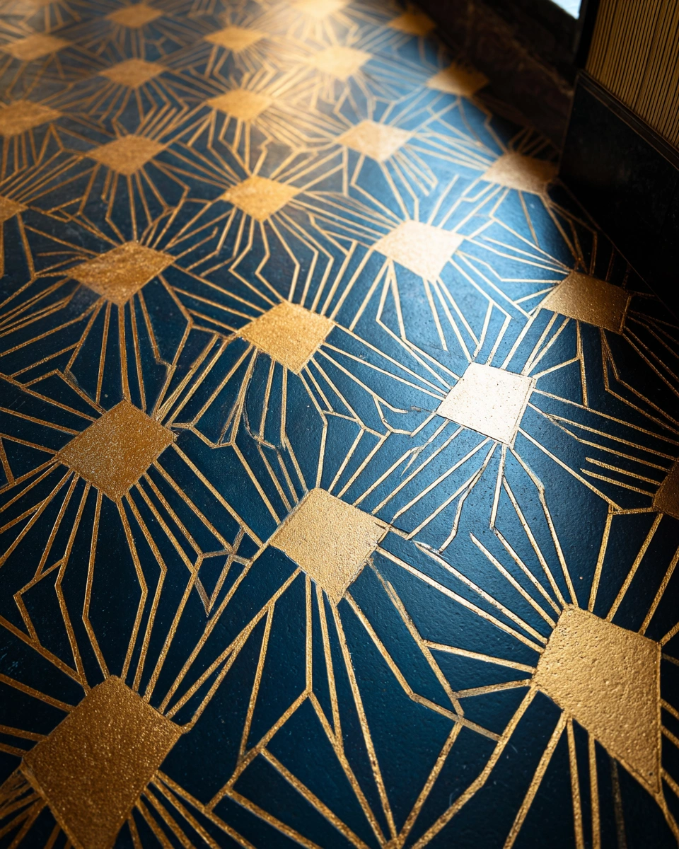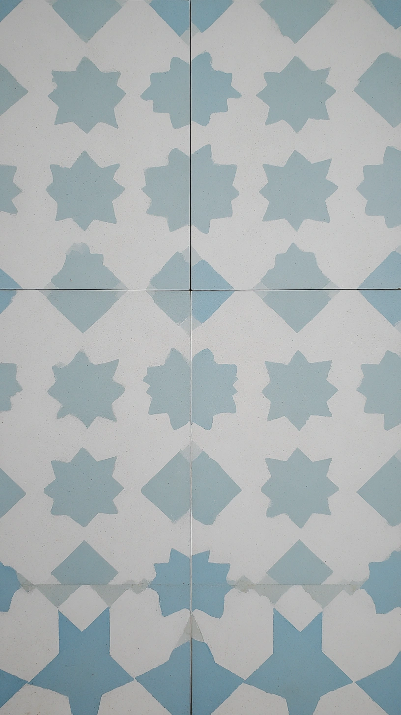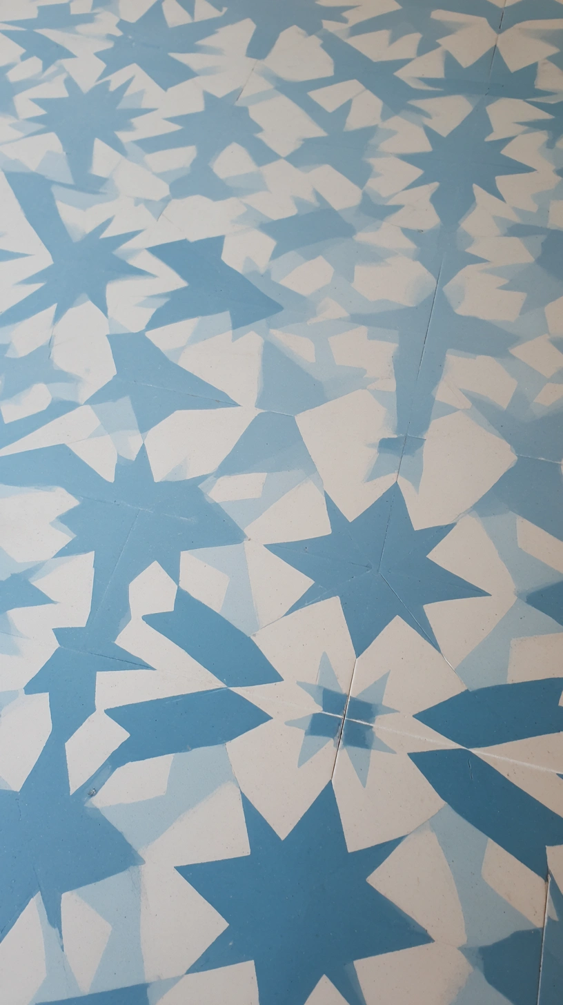 The playful blue star pattern on the floor adds a vibrant touch, making the space feel fresh and inviting while keeping the overall vibe relaxed. To balance the boldness of the pattern, pair it with simple white fixtures and natural wood accents for a cohesive look.