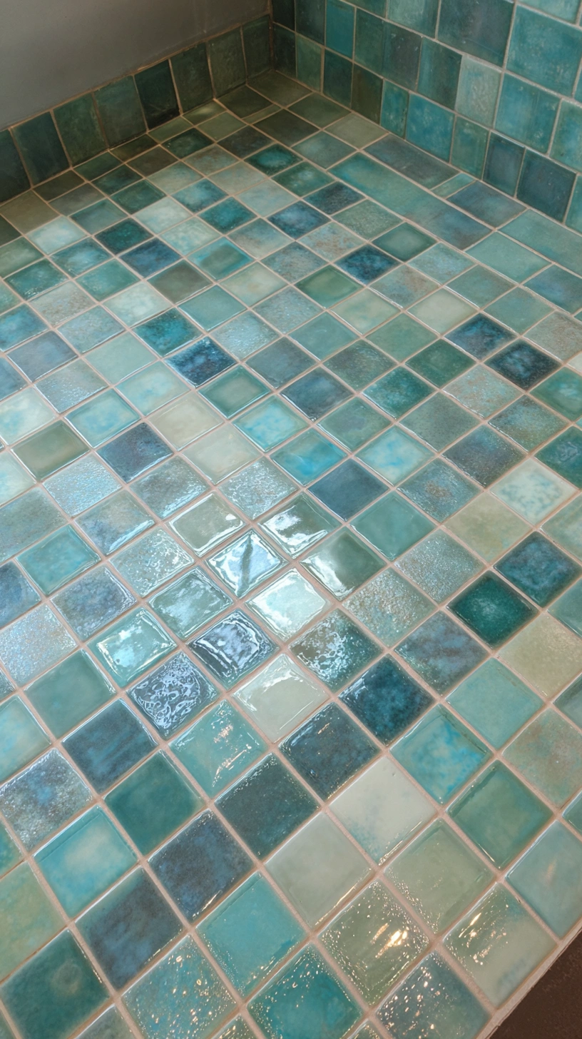 The stunning aqua and green mosaic tiles bring a refreshing vibe, perfect for creating a serene oasis in any bathroom. For a balanced and calming look, pair them with natural wood accents and soft white towels.