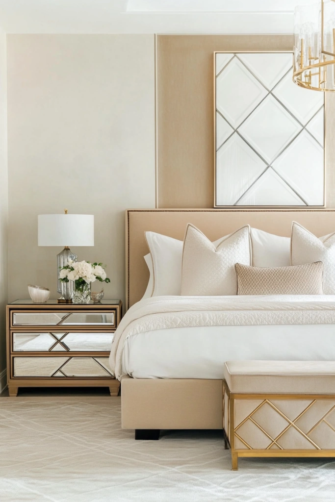 15. Hollywood Glam Beige Bedroom